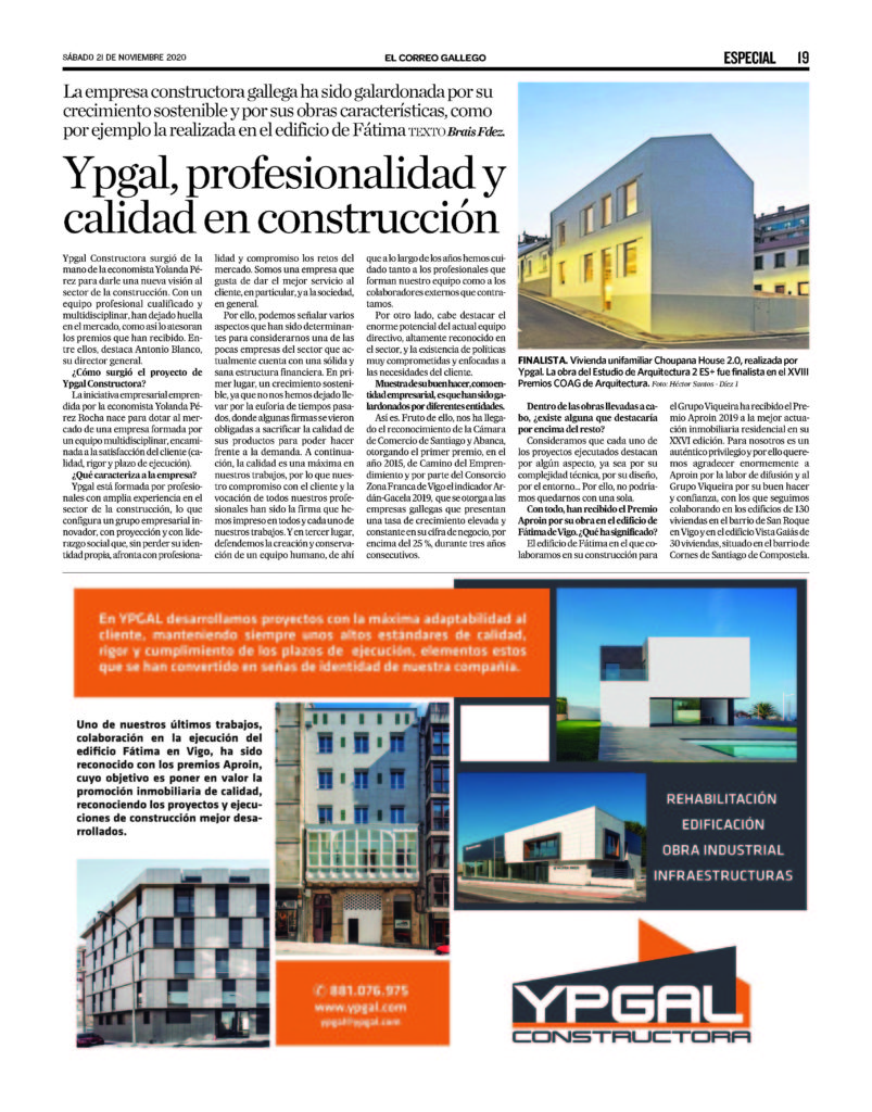 Constructora Galicia, Constructora Santiago, Empresa de obra en Santiago, Empresa de obras en Santiago, Noticias, Reformas de edificios en Galicia, Reformas de edificos Santiago Ypgal en el especial de construcción de El Correo Gallego